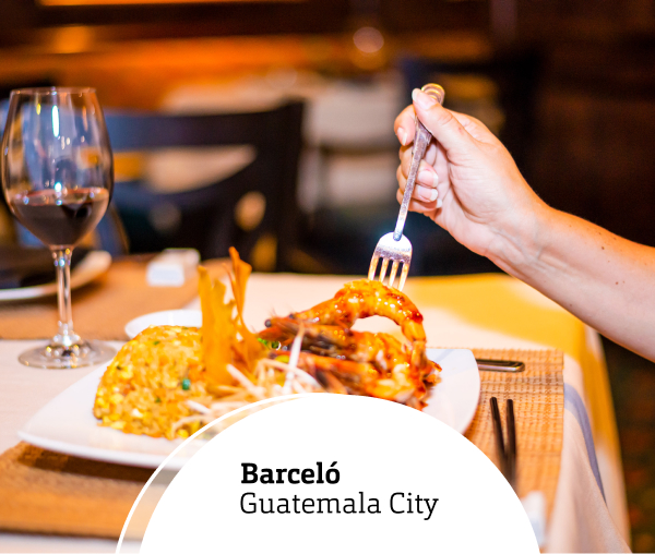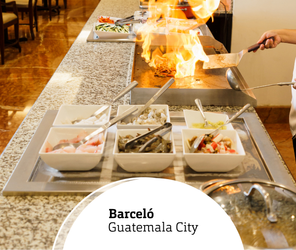 Aprovecha un 20% de descuento en cena buffet en Restaurante La Fuente de Hotel Barceló, de lunes a domingo, al pagar con tu Tarjeta de Débito o Crédito Banrural.