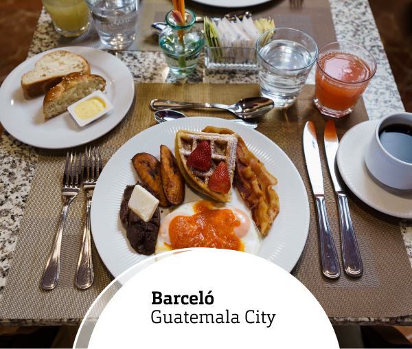Aprovecha este 2×1 en almuerzo buffet en Restaurante La Fuente de Hotel Barceló, los días sábados, al pagar con tu Tarjeta de Débito o Crédito Banrural.