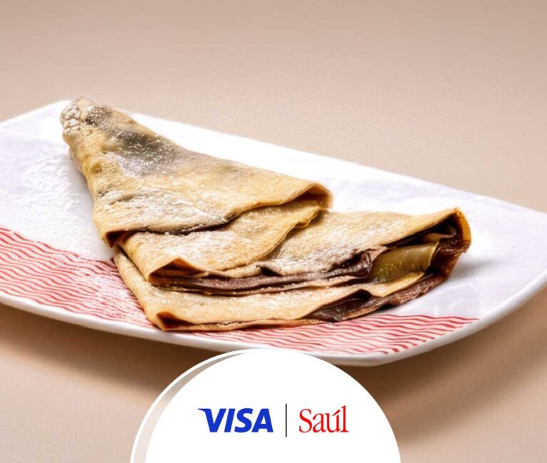 La crepe de Nutella de Saúl sabe mejor porque obtienes 50% de descuento al pagar con tus Tarjetas Platinum o Infinite Banrural Visa.