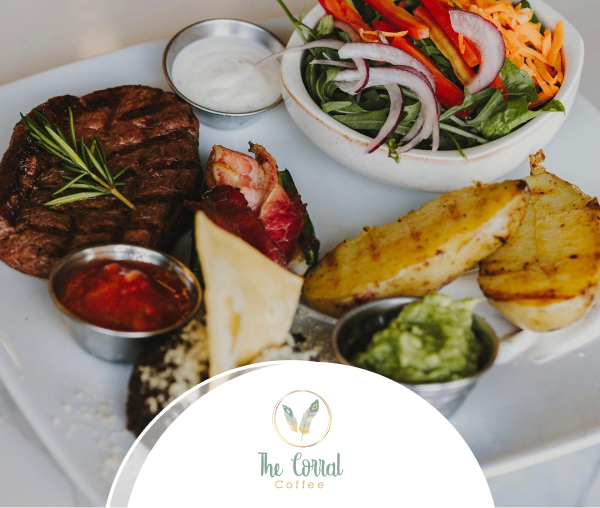 Disfruta de dos tazas de café de 8z y dos postres gratis en la compra de dos 2 Steak Del Corral, al pagar con tu Tarjeta de Débito o Crédito Banrural.