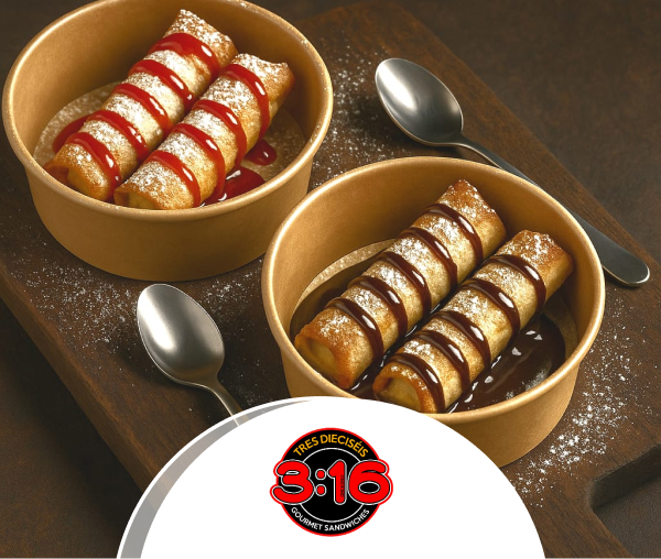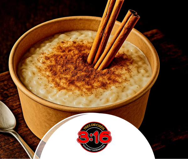 Al pedir cualquier sándwiches por medio de WhatsApp 33335432, recibe gratis postre Mi deleite de arroz en leche, en Tres Dieciséis Sándwiches, al pagar con tu Tarjeta de Débito o Crédito Banrural.