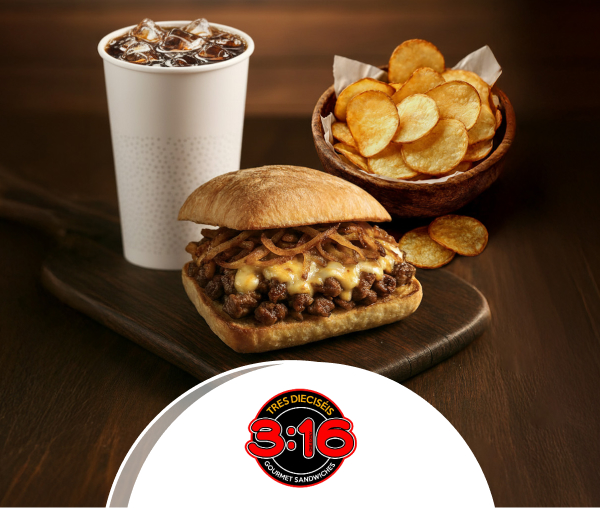 Disfruta GRATIS papas y bebida en la compra de cualquier sándwiches por medio de WhatsApp 33335432, Tres Dieciséis Sándwiches, al pagar con tu Tarjeta de Débito o Crédito Banrural.