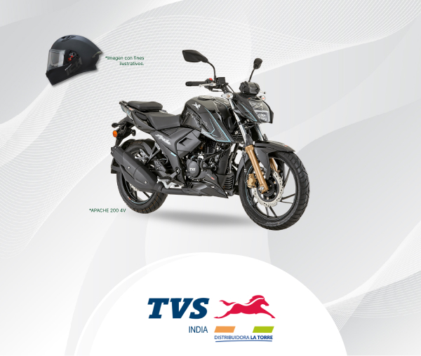 Estrena tu moto TVS Apache 200 4V y aprovecha el precio especial de Q20,990 en TVS, al pagar con tu Tarjeta de Débito o Crédito Banrural